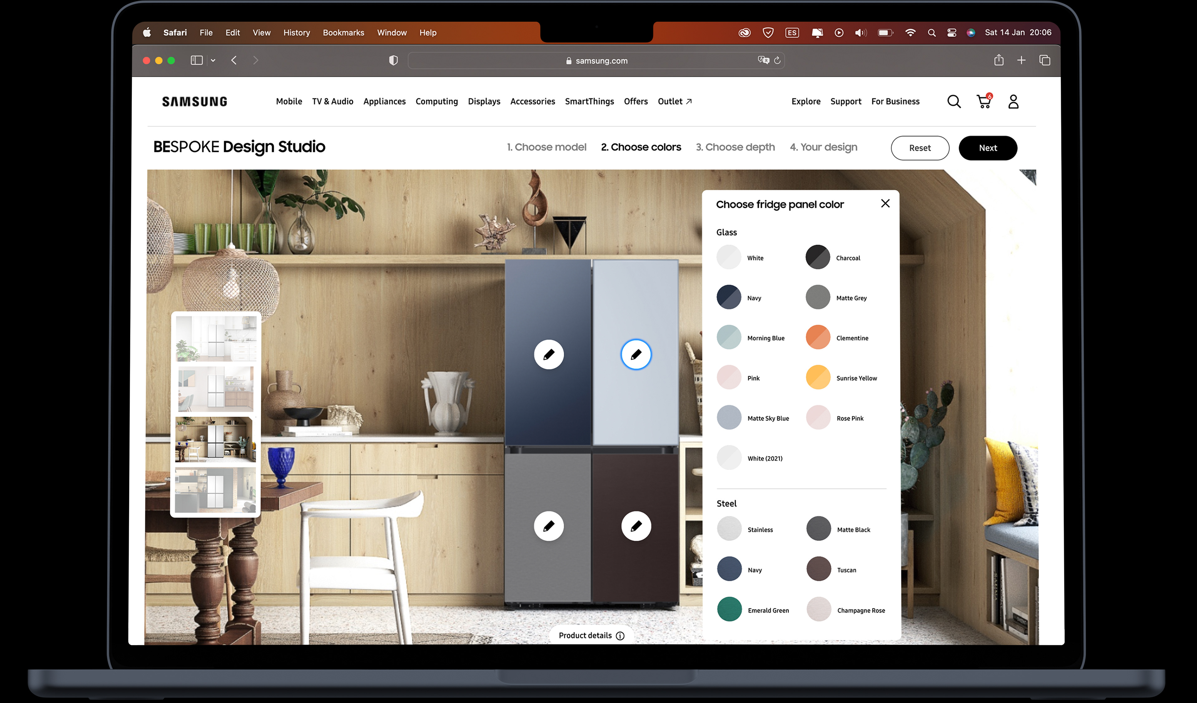 I did collaborative work with various designers for the Samsung brand in New York for the "Bespoke Design Studio" website. I was in charge of the refrigerators' digital illustration in high definition; I emulated various metal textures, glosses and high relief for their application on their interactive web.