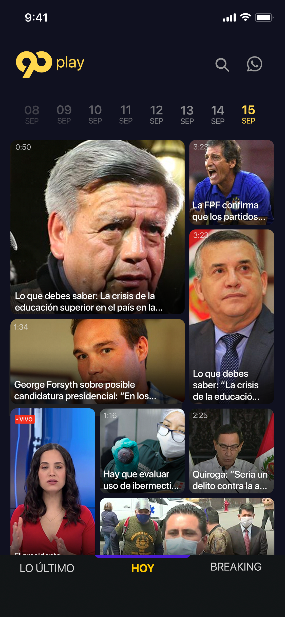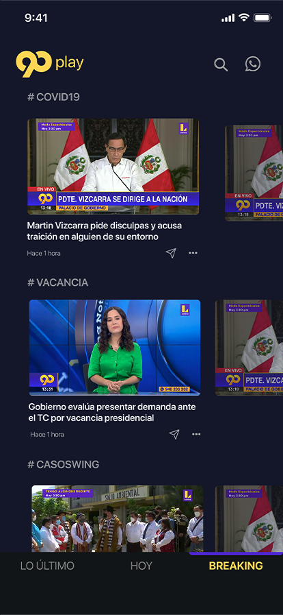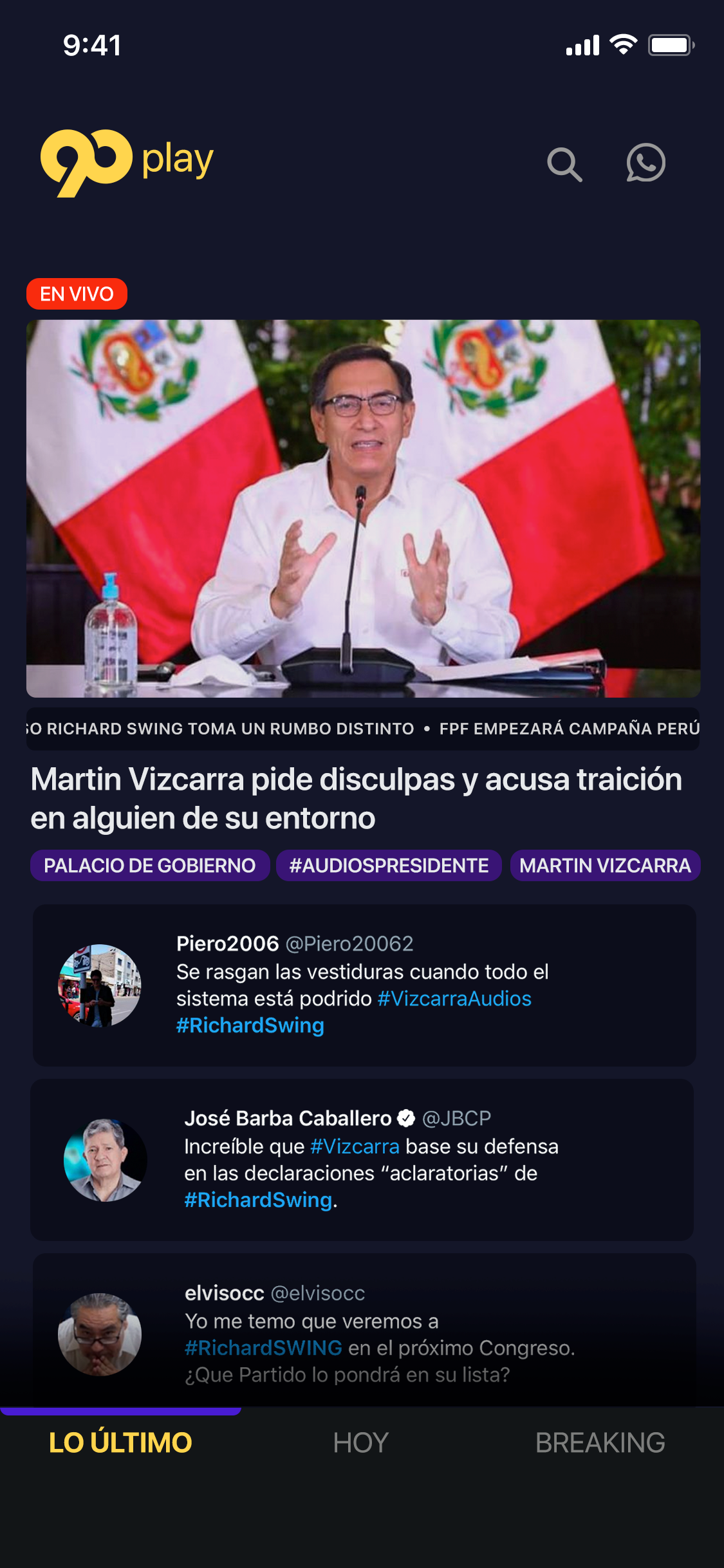 "LO ÚLTIMO": Live tv with real-time Twitter commentary, including the related hashtags, so journalists, politicians, and the audience can express their opinions.